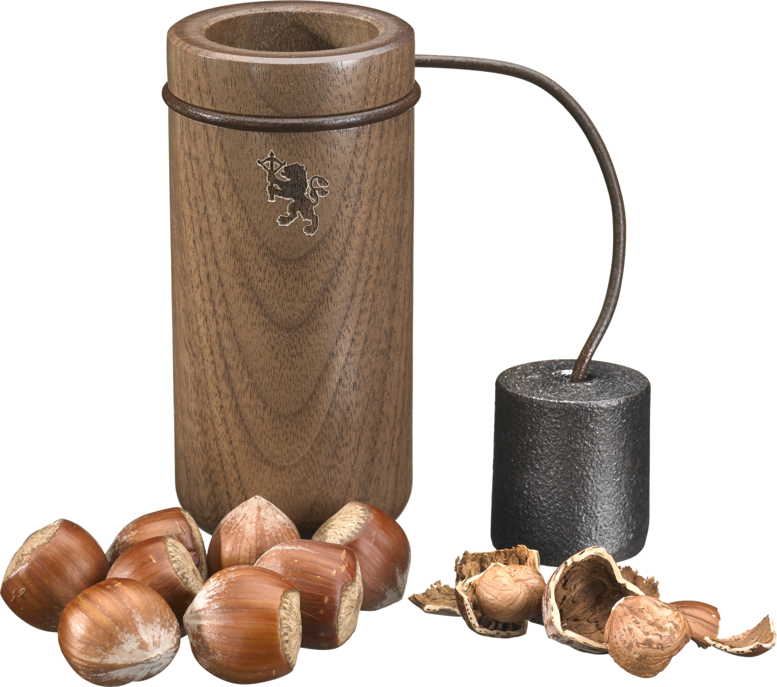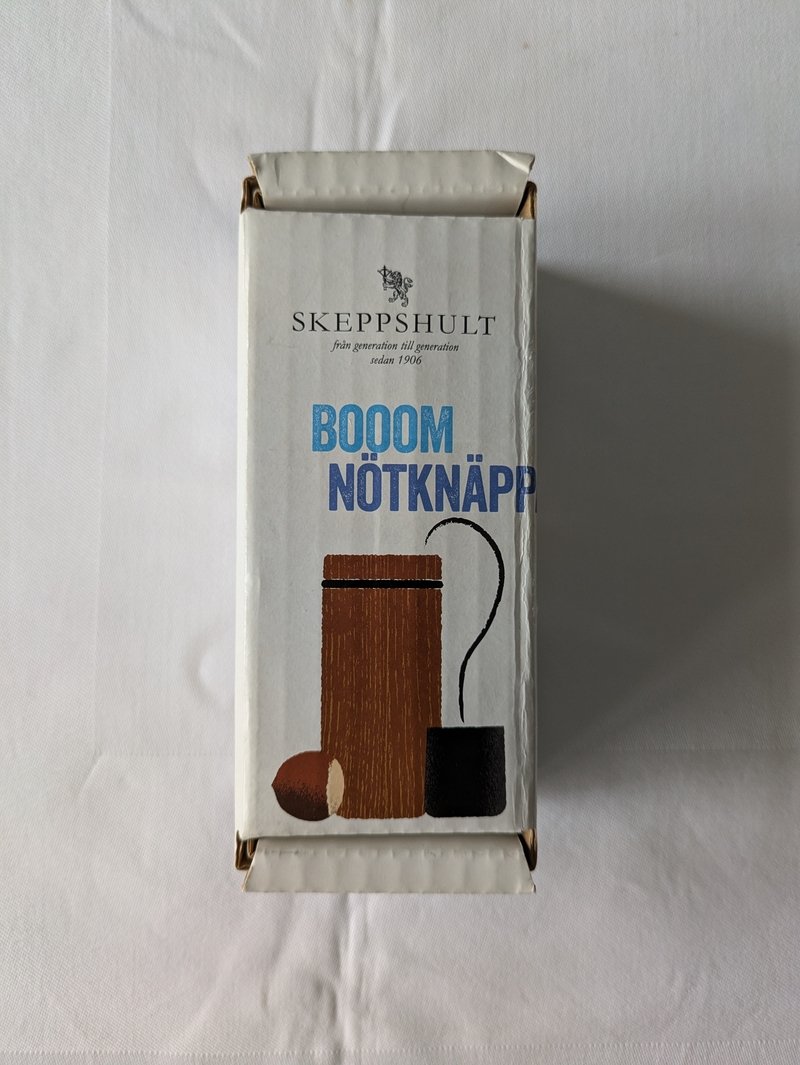 Casse-noisette « BOOOM » de chez SKEPPSHULT, d’une qualité exceptionnelle, est réalisé avec des matériaux nobles de premier choix. Il se compose d’un cylindre solide en fonte, d’un réservoir en bois de noyer et d’une sangle en cuir. Sa conception lui confère non seulement un aspect fascinant, mais garantit également sa robustesse et sa longue durée de vie. Son fonctionnement est épatant : vous insérez la noisette / noix dans le réservoir, ensuite c’est au tour du cylindre. Il ne vous reste plus qu’à faire un aller-retour en le pivotant et le poids en fonte tapera sur votre fruit préféré en le libérant de sa coquille sans effort et sans l’endommager !